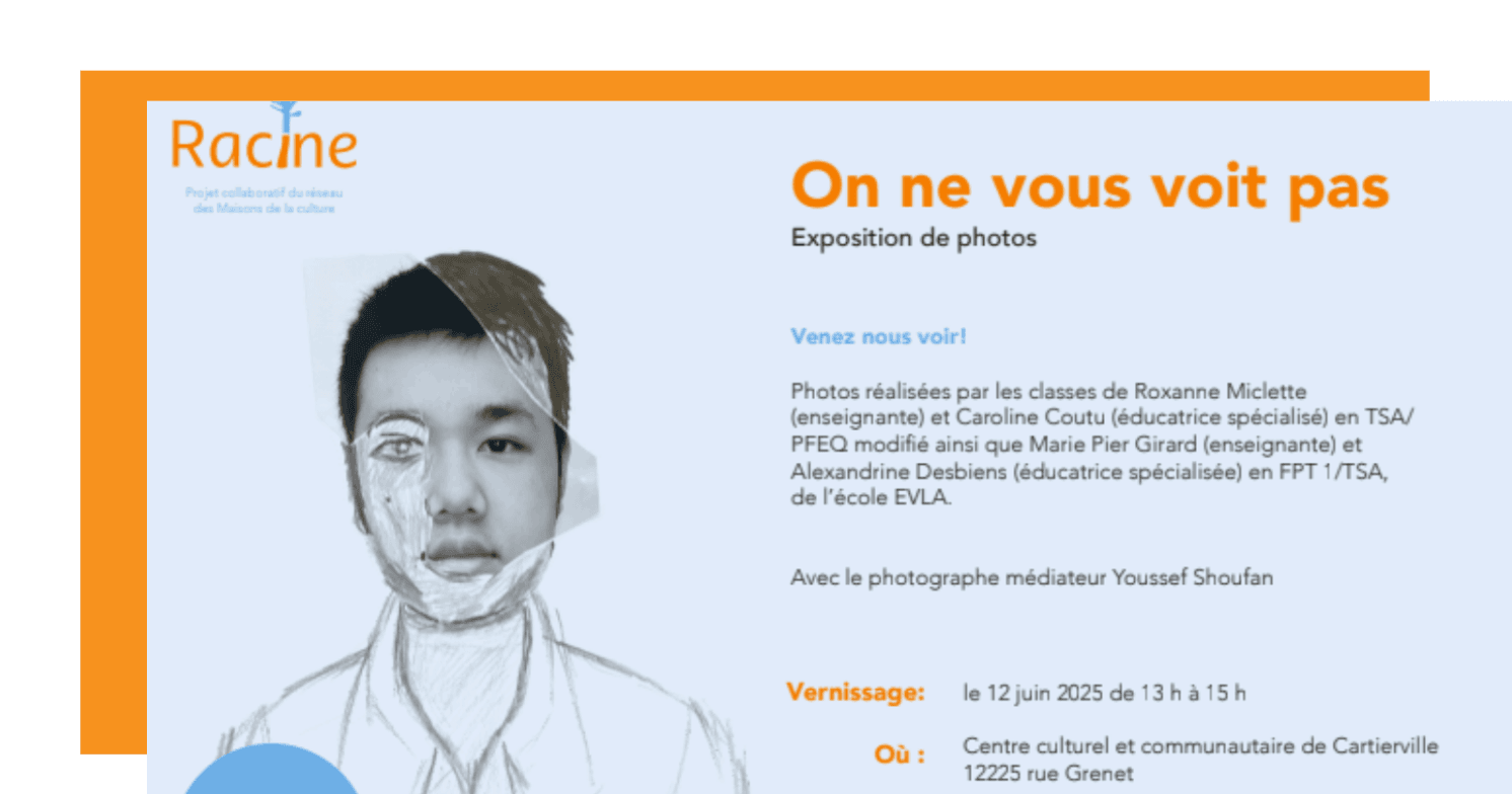 Souhaitant rejoindre un plus grand nombre de jeunes, une collaboration avec les classes spécialisées a mené à une exposition de photos nommées On ne vous voit pas.